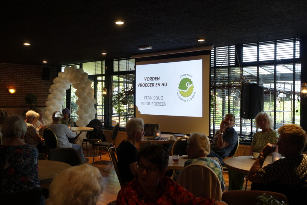 Door het trekken van een nummertje werden we bij binnenkomst bij één van de 13 groepen ingedeeld. Met 45 vragen werd onze kennis van de gemeente Vorden en de vereniging Vrouwen Rondom Vorden en haar voorgangers getest. Binnen de groepen werd levendig gediscussieerd over de antwoorden want de vragen waren niet allemaal even gemakkelijk.